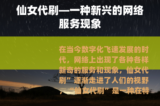 在当今数字化飞速发展的时代,网络上出现了各种各样新奇的服务和现象,仙女代刷”逐渐走进了人们的视野。