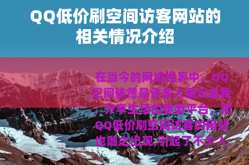 在当今的网络世界中,QQ空间依然是许多人展示自我、分享生活的重要平台,而QQ低价刷空间访客的网站也随之出现,引起了不少人的关注。