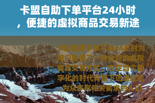 卡盟自助下单平台24小时为用户提供了一种全新的虚拟商品交易方式,它在当今数字化的时代背景下迅速崛起,为众多有相关需求的人们带来了极大的便利。