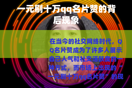 在当今的社交网络时代,QQ名片赞成为了许多人展示自己人气和社交活跃度的一种方式,而市场上出现的“一元刷十万qq名片赞”的现象,引发了不少人的关注和参与。