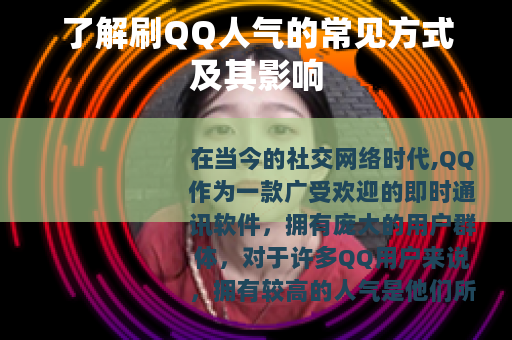 在当今的社交网络时代,QQ作为一款广受欢迎的即时通讯软件,拥有庞大的用户群体,对于许多QQ用户来说,拥有较高的人气是他们所追求的目标之一,刷QQ人气也因此成为了一个备受关注的话题。