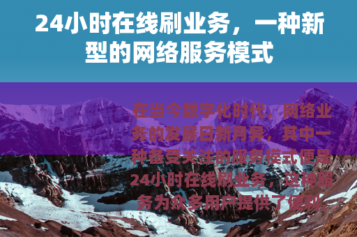 在当今数字化时代,网络业务的发展日新月异,其中一种备受关注的服务模式便是24小时在线刷业务,这种服务为众多用户提供了便利,满足了他们在不同领域的特定需求。