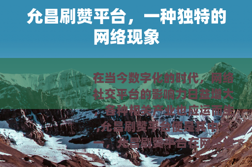 在当今数字化的时代,网络社交平台的影响力日益增大,各种相关产业也应运而生,允昌刷赞平台便是其中之一。