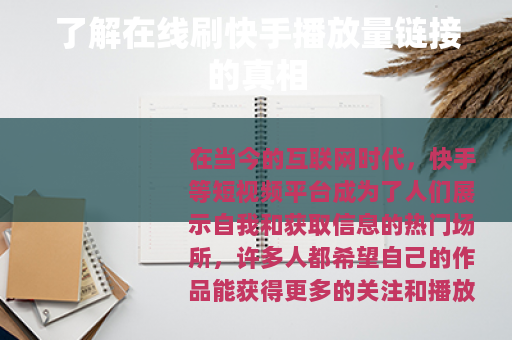 在当今的互联网时代,快手等短视频平台成为了人们展示自我和获取信息的热门场所,许多人都希望自己的作品能获得更多的关注和播放量,一些所谓的“在线刷快手播放量链接”开始在网络上出现。