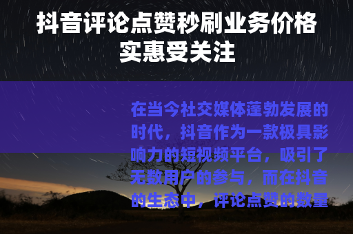 在当今社交媒体蓬勃发展的时代,抖音作为一款极具影响力的短视频平台,吸引了无数用户的参与,而在抖音的生态中,评论点赞的数量往往被视为衡量一个视频受欢迎程度的重要指标之一,由此,抖音评论点赞秒刷业务应运而生,并且以其便宜的价格在一定范围内受到了不少用户的青睐。