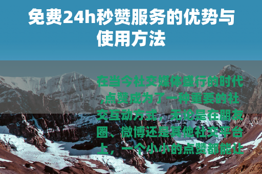 在当今社交媒体盛行的时代,点赞成为了一种重要的社交互动方式,无论是在朋友圈、微博还是其他社交平台上,一个小小的点赞都能让发布者感受到他人的关注和认可,而免费24h秒赞服务的出现,更是为广大用户提供了一种全新的社交体验。