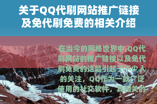 在当今的网络世界中,QQ代刷网站的推广链接以及免代刷免费的话题引起了不少人的关注,QQ作为一款广泛使用的社交软件,其相关的代刷业务也随之兴起。