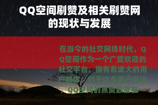 在当今的社交网络时代,QQ空间作为一个广受欢迎的社交平台,拥有着庞大的用户群体,对于许多用户来说,QQ空间的点赞数量在一定程度上代表着自己的人气和受欢迎程度,QQ空间刷赞以及与之相关的QQ刷赞网应运而生。
