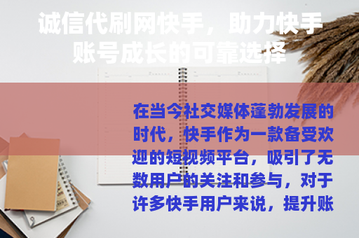 在当今社交媒体蓬勃发展的时代,快手作为一款备受欢迎的短视频平台,吸引了无数用户的关注和参与,对于许多快手用户来说,提升账号的活跃度、粉丝数量以及作品的播放量等,成为了他们在平台上发展的重要目标,而诚信代刷网快手的出现,为这些用户提供了一个有效的解决方案。