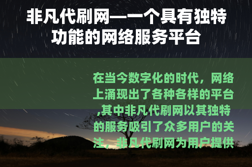 在当今数字化的时代,网络上涌现出了各种各样的平台,其中非凡代刷网以其独特的服务吸引了众多用户的关注。