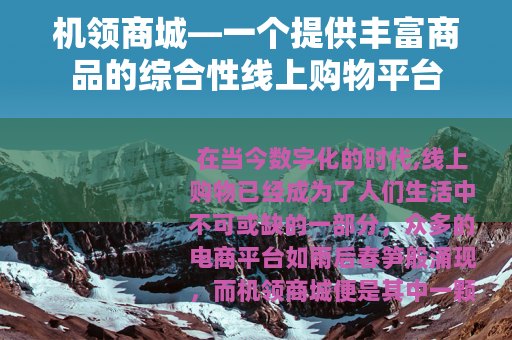 在当今数字化的时代,线上购物已经成为了人们生活中不可或缺的一部分,众多的电商平台如雨后春笋般涌现,而机领商城便是其中一颗璀璨的明珠。