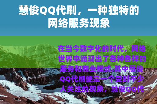 在当今数字化的时代,网络世界中涌现出了各种各样的服务和商业模式,其中慧俊QQ代刷便是一个受到不少人关注的现象。