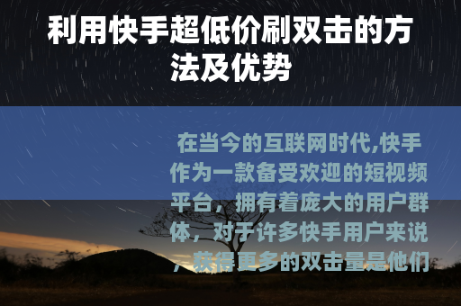 在快手的发展历程中,超低价刷双击的现象逐渐成为了一种独特的景观,它不仅改变了用户在平台上的行为方式,也对平台的运营和发展产生了多方面的影响。