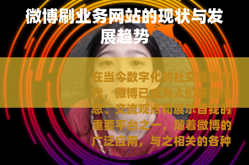 在当今数字化的社交媒体时代,微博已成为人们获取信息、交流观点和展示自我的重要平台之一,随着微博的广泛应用,与之相关的各种业务也应运而生,其中微博刷业务网站就是一个备受关注的领域。