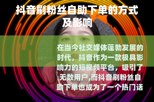 在当今社交媒体蓬勃发展的时代,抖音作为一款极具影响力的短视频平台,吸引了无数用户,而抖音刷粉丝自助下单也成为了一个热门话题。
