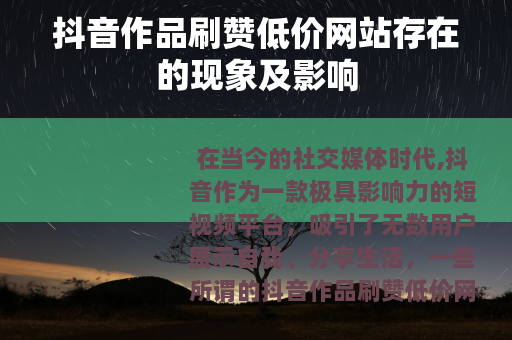 在当今的社交媒体时代,抖音作为一款极具影响力的短视频平台,吸引了无数用户展示自我、分享生活,一些所谓的抖音作品刷赞低价网站也悄然出现。