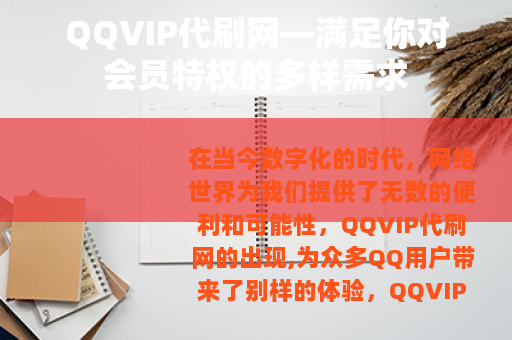 在当今数字化的时代,网络世界为我们提供了无数的便利和可能性,QQVIP代刷网的出现,为众多QQ用户带来了别样的体验。