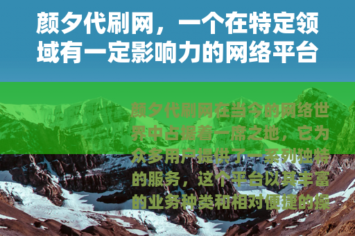颜夕代刷网在当今的网络世界中占据着一席之地,它为众多用户提供了一系列独特的服务,这个平台以其丰富的业务种类和相对便捷的操作方式,吸引了不少人的关注。