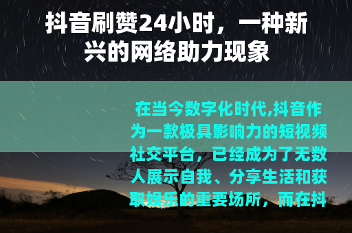 在当今数字化时代,抖音作为一款极具影响力的短视频社交平台,已经成为了无数人展示自我、分享生活和获取娱乐的重要场所,而在抖音的生态中,“抖音刷赞24小时”服务也悄然兴起,成为了一个备受关注的话题。
