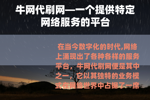 在当今数字化的时代,网络上涌现出了各种各样的服务平台,牛网代刷网便是其中之一,它以其独特的业务模式在网络世界中占据了一席之地。