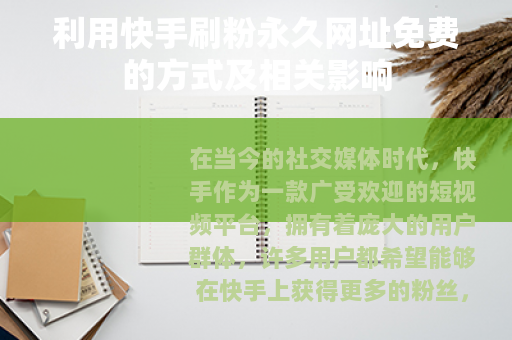 在当今的社交媒体时代,快手作为一款广受欢迎的短视频平台,拥有着庞大的用户群体,许多用户都希望能够在快手上获得更多的粉丝,以增加自己的影响力和知名度,而“快手刷粉永久网址免费”这样的话题也随之兴起,吸引了不少人的关注。