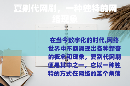 在当今数字化的时代,网络世界中不断涌现出各种新奇的概念和现象,夏别代网刷便是其中之一,它以一种独特的方式在网络的某个角落里悄然发展,吸引着一部分人的关注。