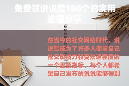 在当今的社交网络时代,说说赞成为了许多人衡量自己社交影响力和受欢迎程度的一个重要指标,每个人都希望自己发布的说说能够得到更多人的关注和点赞,这不仅能让我们感受到被认可的喜悦,还能在一定程度上提升我们在社交圈子里的形象,而现在,有一个好消息要告诉大家,那就是有办法可以免费领说说赞100个哦。