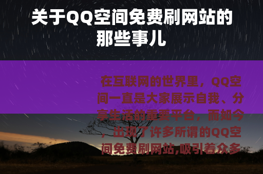 在互联网的世界里,QQ空间一直是大家展示自我、分享生活的重要平台,而如今,出现了许多所谓的QQ空间免费刷网站,吸引着众多用户的目光。