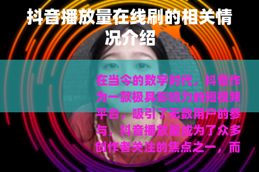 在当今的数字时代,抖音作为一款极具影响力的短视频平台,吸引了无数用户的参与,抖音播放量成为了众多创作者关注的焦点之一,而抖音播放量在线刷的现象也随之出现,引起了不少人的兴趣。