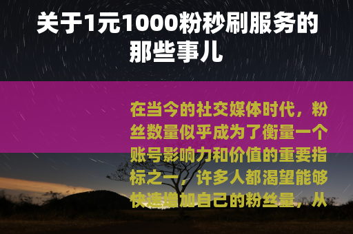 在当今的社交媒体时代,粉丝数量似乎成为了衡量一个账号影响力和价值的重要指标之一,许多人都渴望能够快速增加自己的粉丝量,从而在众多的网络用户中脱颖而出,获得更多的关注和机会,而“1元1000粉秒刷死粉”这样的服务便应运而生,在网络的某些角落悄然流行起来。