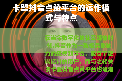 在当今数字化的社交媒体时代,抖音作为一款极具影响力的短视频平台,吸引了数以亿计的用户,而与之相关的卡盟抖音点赞平台也逐渐进入了人们的视野。