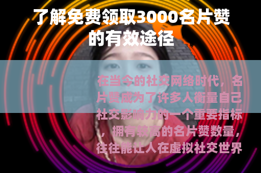 通过这些合法合规且积极健康的方式,我们完全可以在不花费任何金钱的情况下,逐步实现免费领取3000名片赞的目标,提升自己在社交网络中的人气和影响力,让自己的社交生活更加丰富多彩,我们要善于利用这些机会,不断努力和尝试,在社交网络的世界里展现出自己的风采,收获更多的认可和支持。