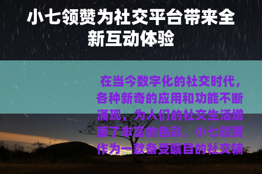 在当今数字化的社交时代,各种新奇的应用和功能不断涌现,为人们的社交生活增添了丰富的色彩,小七领赞作为一款备受瞩目的社交辅助工具,正逐渐走进大众的视野,为用户带来了独特的社交互动体验。