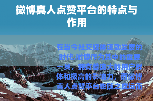 在当今社交媒体蓬勃发展的时代,微博作为其中的重要一员,拥有着庞大的用户群体和极高的影响力,而微博真人点赞平台也随之应运而生,为微博用户提供了一种新的互动方式和推广途径。