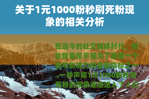 在当今的社交媒体时代,粉丝数量似乎成为了衡量一个账号影响力的重要指标之一,一种声称1元1000粉秒刷死粉的现象逐渐进入了人们的视野。