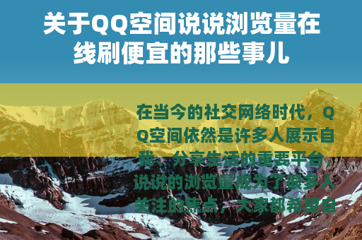 在当今的社交网络时代,QQ空间依然是许多人展示自我、分享生活的重要平台,说说的浏览量成为了很多人关注的焦点,大家都希望自己发布的说说能有较高的关注度,从而获得更多的点赞、评论,增强自己在社交圈中的影响力,一种名为“QQ空间说说浏览量在线刷便宜”的服务便应运而生。
