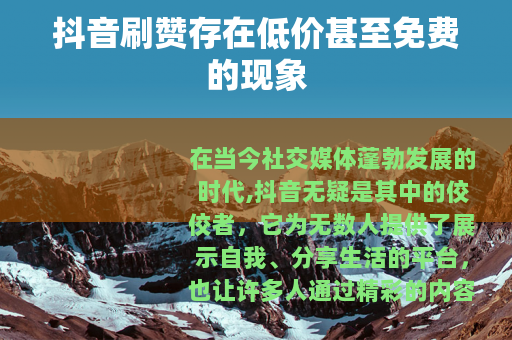 抖音上的点赞数量在一定程度上代表着视频的受欢迎程度和影响力,不少人渴望自己的作品能有更多的点赞,以获得更多的曝光和认可,而在市场需求的推动下,出现了一些声称可以提供抖音刷赞服务且价格极低甚至免费的情况。