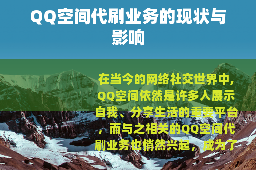 在当今的网络社交世界中,QQ空间依然是许多人展示自我、分享生活的重要平台,而与之相关的QQ空间代刷业务也悄然兴起,成为了一个备受关注的现象。