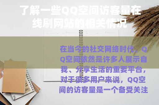 在当今的社交网络时代,QQ空间依然是许多人展示自我、分享生活的重要平台,对于很多用户来说,QQ空间的访客量是一个备受关注的指标,它在一定程度上反映了自己在社交圈中的受欢迎程度和影响力,一些QQ空间访客量在线刷网站便应运而生。