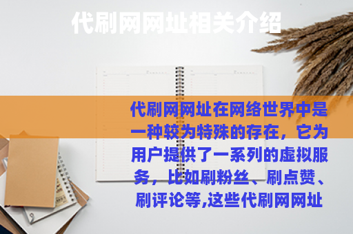 代刷网网址在网络世界中是一种较为特殊的存在,它为用户提供了一系列的虚拟服务,比如刷粉丝、刷点赞、刷评论等,这些代刷网网址通常有着各自不同的页面设计和功能布局。