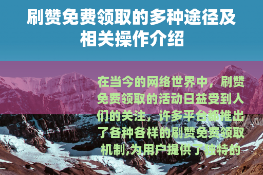 在当今的网络世界中,刷赞免费领取的活动日益受到人们的关注,许多平台都推出了各种各样的刷赞免费领取机制,为用户提供了独特的体验和机会。