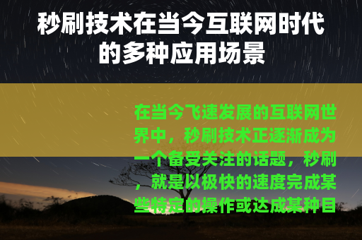 在当今飞速发展的互联网世界中,秒刷技术正逐渐成为一个备受关注的话题,秒刷,就是以极快的速度完成某些特定的操作或达成某种目标,它在不同的领域有着不同的表现形式和应用价值。
