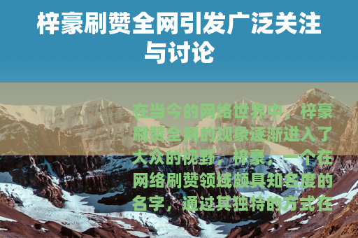 在当今的网络世界中,梓豪刷赞全网的现象逐渐进入了大众的视野,梓豪,一个在网络刷赞领域颇具知名度的名字,通过其独特的方式在全网范围内开展刷赞业务,吸引了众多用户的参与和关注。