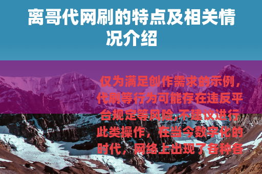 离哥代网刷作为网络上的一种现象,有其自身的特点、优势和市场需求,但同时也需要用户在使用时保持理性和谨慎,权衡其利弊,以确保自身在网络平台上的发展能够健康、可持续,才能在利用其服务的同时,避免可能出现的不利后果,实现自己在网络世界中的目标。