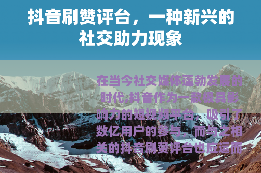 在当今社交媒体蓬勃发展的时代,抖音作为一款极具影响力的短视频平台,吸引了数亿用户的参与,而与之相关的抖音刷赞评台也应运而生,成为了一个备受关注的话题。