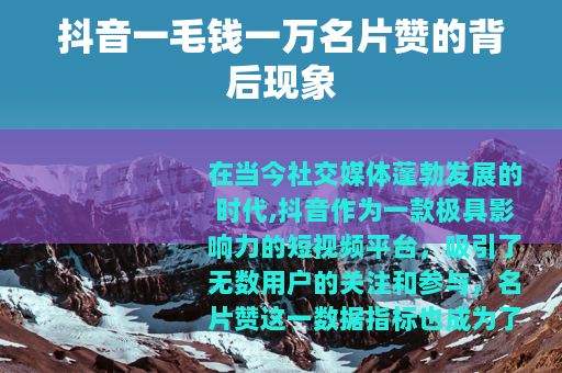 在当今社交媒体蓬勃发展的时代,抖音作为一款极具影响力的短视频平台,吸引了无数用户的关注和参与,名片赞这一数据指标也成为了许多用户关注的焦点,而抖音一毛钱一万名片赞的现象更是引起了广泛的讨论。