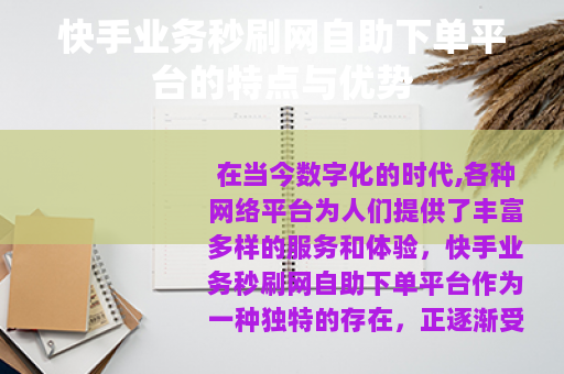 在当今数字化的时代,各种网络平台为人们提供了丰富多样的服务和体验,快手业务秒刷网自助下单平台作为一种独特的存在,正逐渐受到越来越多用户的关注。