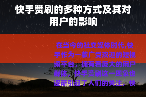 在当今的社交媒体时代,快手作为一款广受欢迎的短视频平台,拥有着庞大的用户群体,快手赞刷这一现象也逐渐引起了人们的关注。