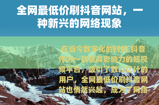 在当今数字化的时代,抖音作为一款极具影响力的短视频平台,吸引了数以亿计的用户,全网最低价刷抖音网站也悄然兴起,成为了网络上的一个热门话题。