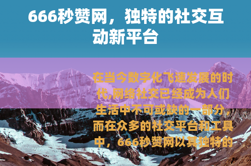 在当今数字化飞速发展的时代,网络社交已经成为人们生活中不可或缺的一部分,而在众多的社交平台和工具中,666秒赞网以其独特的功能和魅力,吸引了越来越多用户的关注。